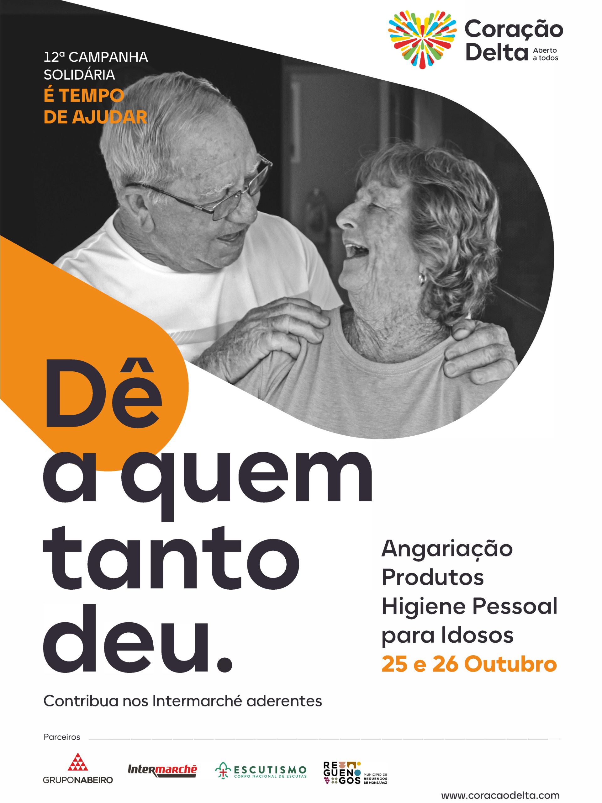 Com o propósito de melhorar a qualidade de vida da população sénior em situação de vulnerabilidade, a Associação de Solidariedade Social Coração Delta lança a 12ª edição da campanha “É tempo de Ajudar”. Nos dias 25 e 26 de outubro, em mais de 100 lojas Intermarché dos distritos de Beja, Castelo Branco, Évora, Faro, Leiria, Portalegre, Setúbal e Santarém, será feita uma recolha de produtos de higiene pessoal, levando conforto, dignidade e cuidados básicos a quem mais precisa.