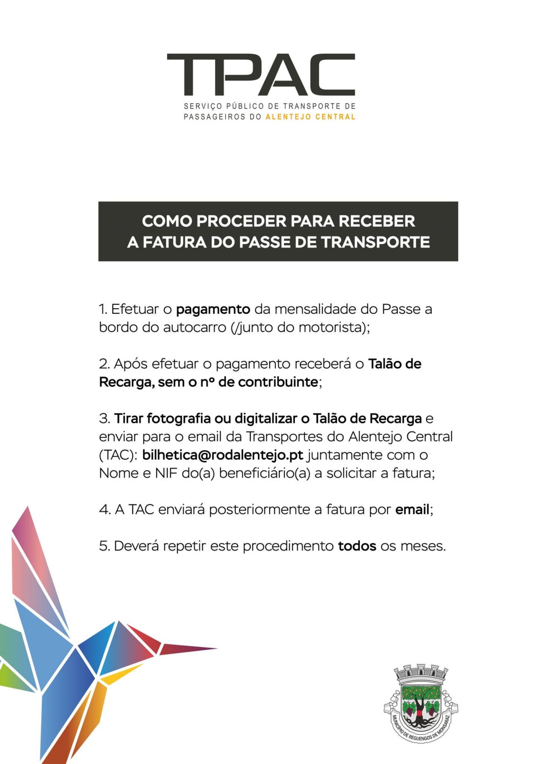 Arquivado: Como proceder para receber a fatura do passe de transporte?