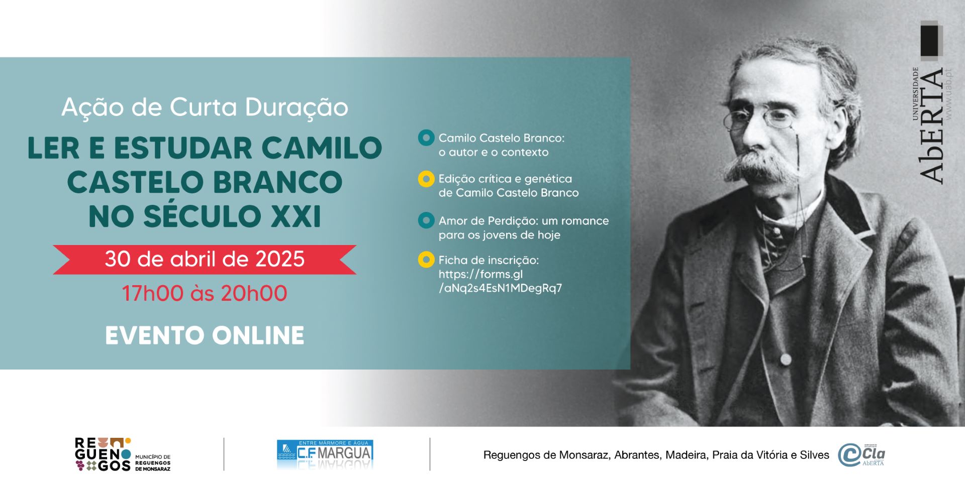 A 26.ª Feira do Livro de Reguengos de Monsaraz acolhe no próximo dia 30 de abril, às 17h00, a ação online de curta duração “Ler e estudar Camilo Castelo Branco no século XXI”.