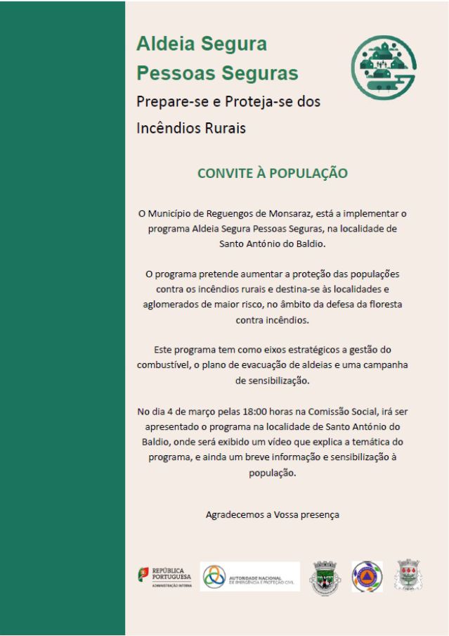 O Município de Reguengos de Monsaraz, está a implementar o programa Aldeia Segura Pessoas Seguras, na localidade de Santo António do Baldio.