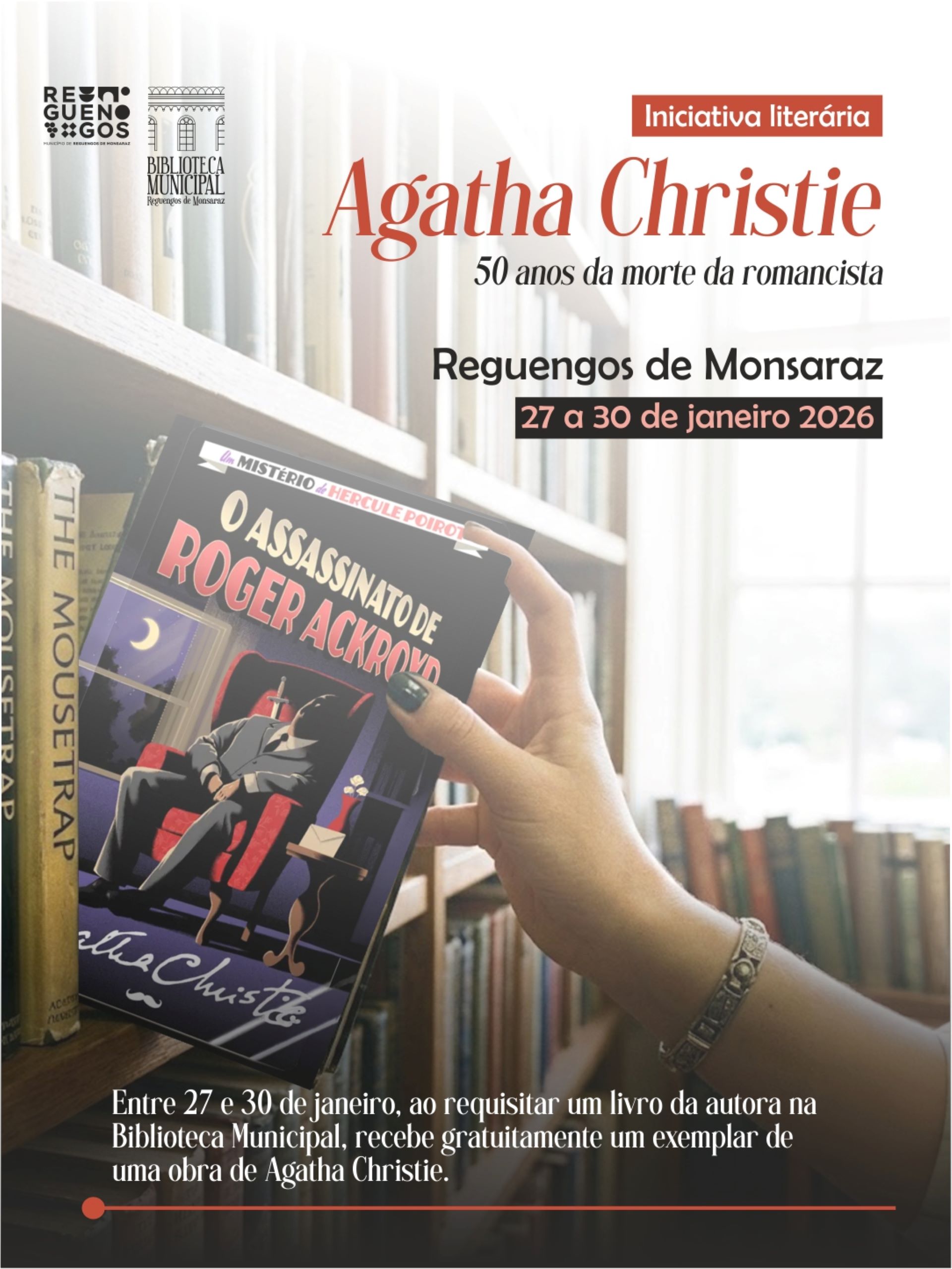 Entre 27 e 30 de janeiro de 2026, ao requisitar um livro da autora, recebe gratuitamente um exemplar de uma obra de Agatha Christie.