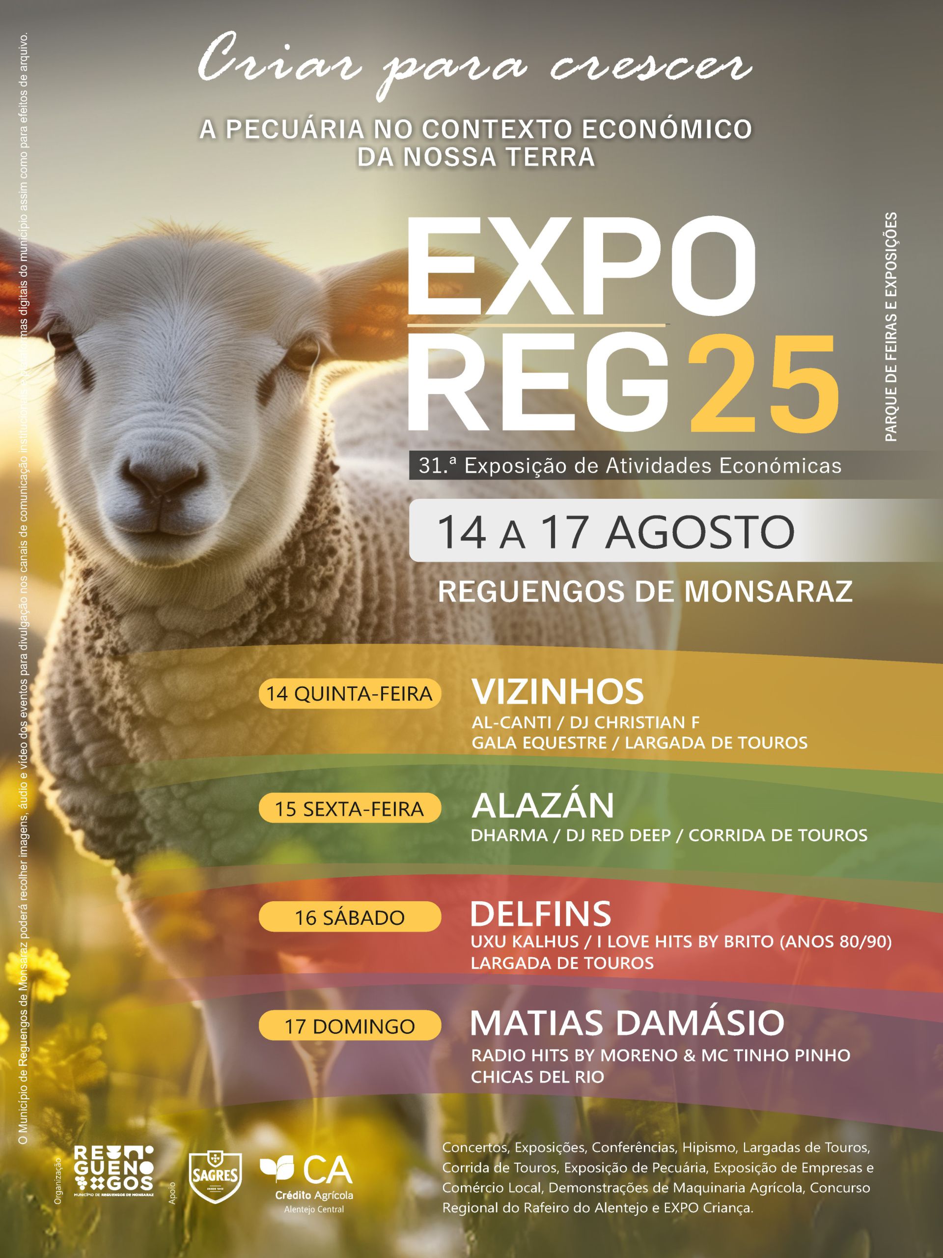 - 16h00: Abertura oficial da Exporeg 25 – 31.ª Exposição de Atividades Económicas de Reguengos de Monsaraz