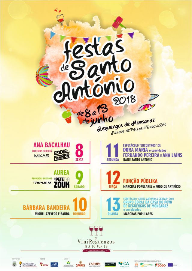 Tradicionais festas do santo padroeiro da cidade de Reguengos de Monsaraz com música, tasquinhas, marchas populares e muita animação.