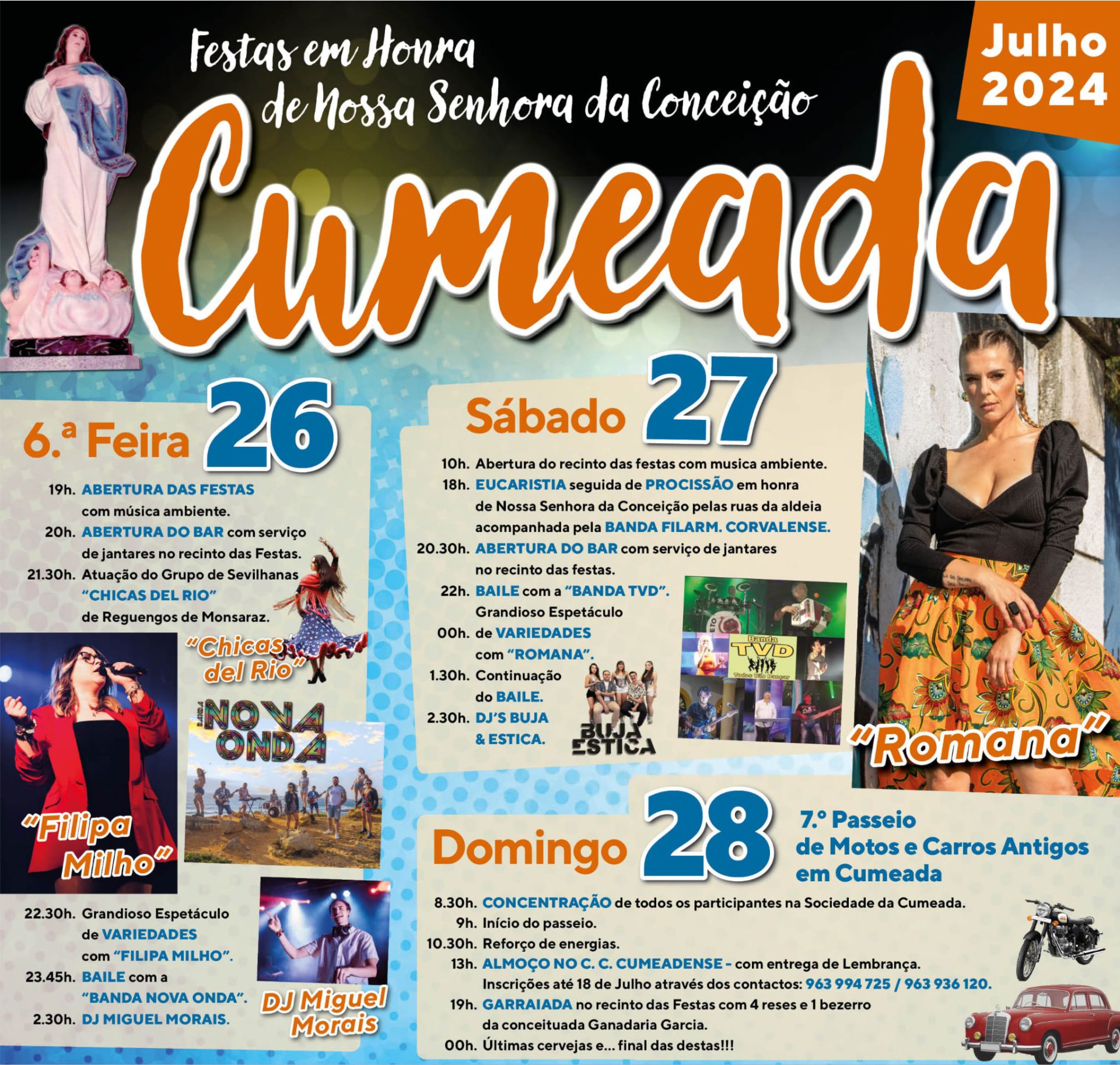 18h00 – Eucaristia seguida de procissão em honra de Nossa Senhora da Conceição pelas ruas da aldeia, acompanhada pela Banda Filarmónica Corvalense
