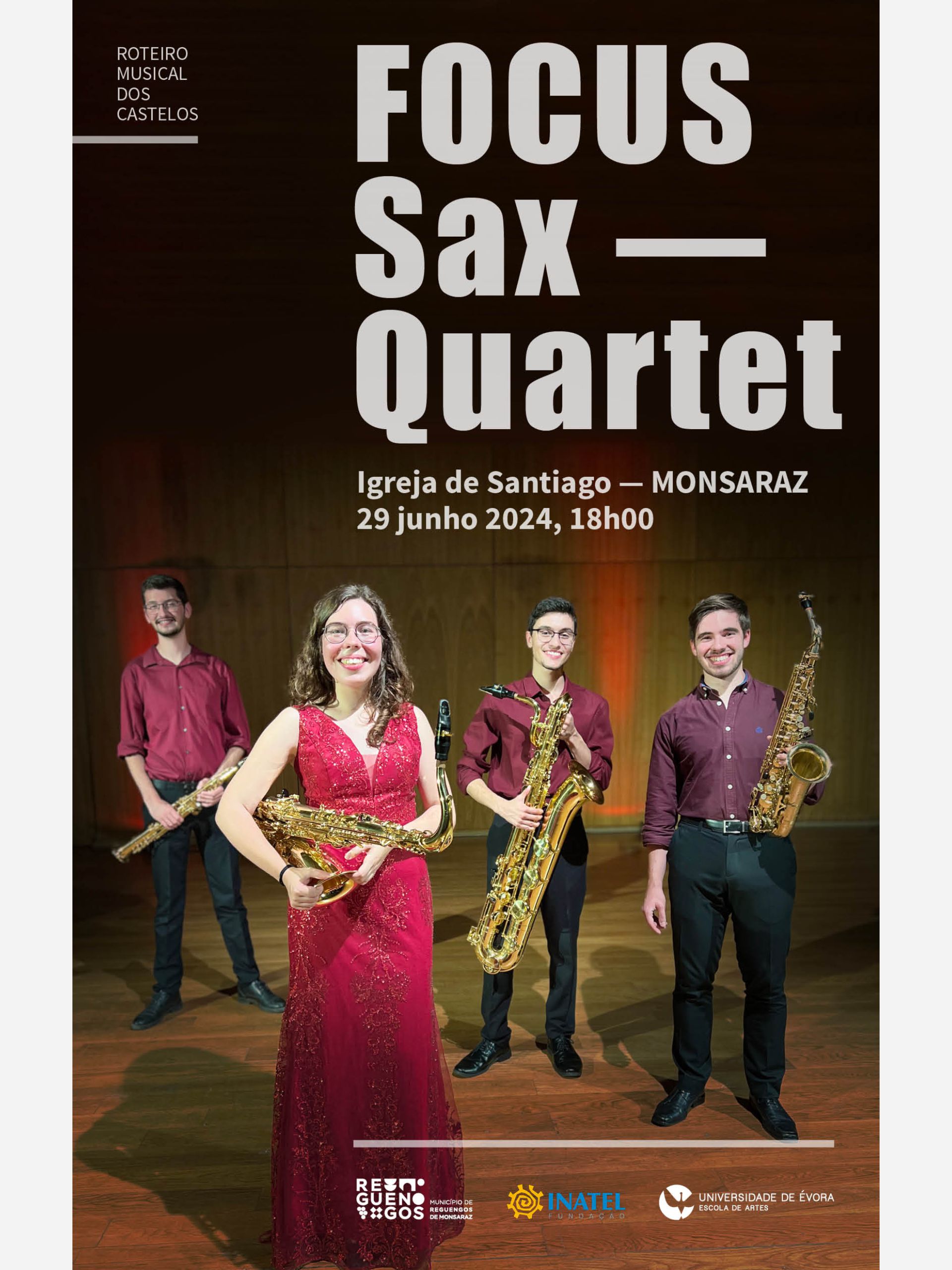 No dia 29 de junho, pelas 18h00, vai-se realizar um concerto do quarteto de saxofones FOCUS Sax Quartet na Igreja de Santiago em Monsaraz