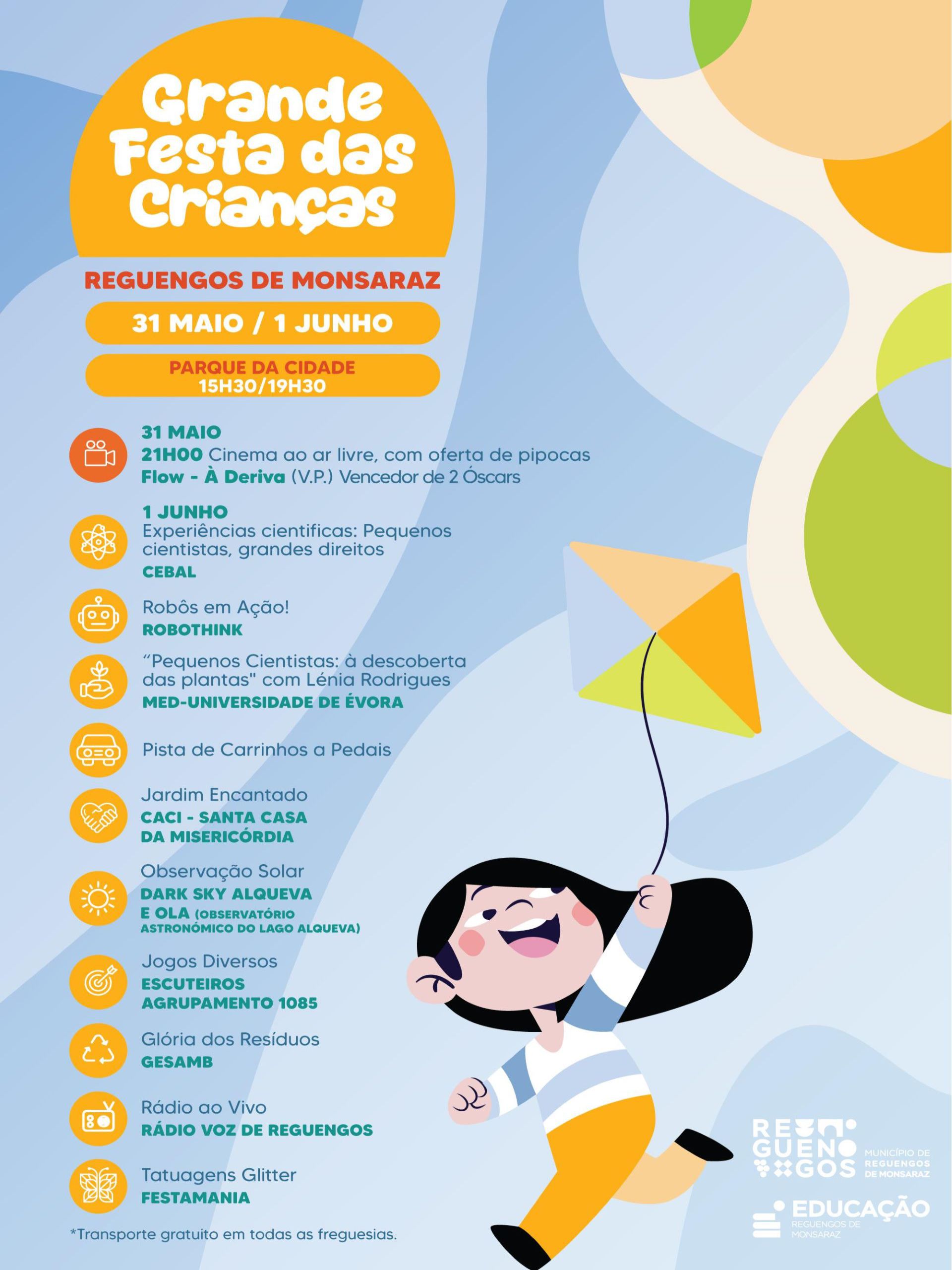 O Município de Reguengos de Monsaraz vai assinalar o Dia da Criança com a realização da Grande Festa das Crianças, que terá lugar nos dias 31 de maio e 1 de junho, no Parque da Cidade.