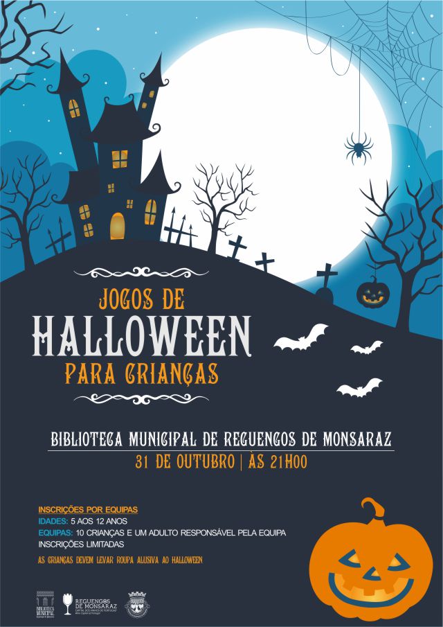 Inscrições na Biblioteca Municipal para equipas de 10 crianças com idades entre os 5 e os 12 anos. As crianças devem levar roupa alusiva ao Halooween.