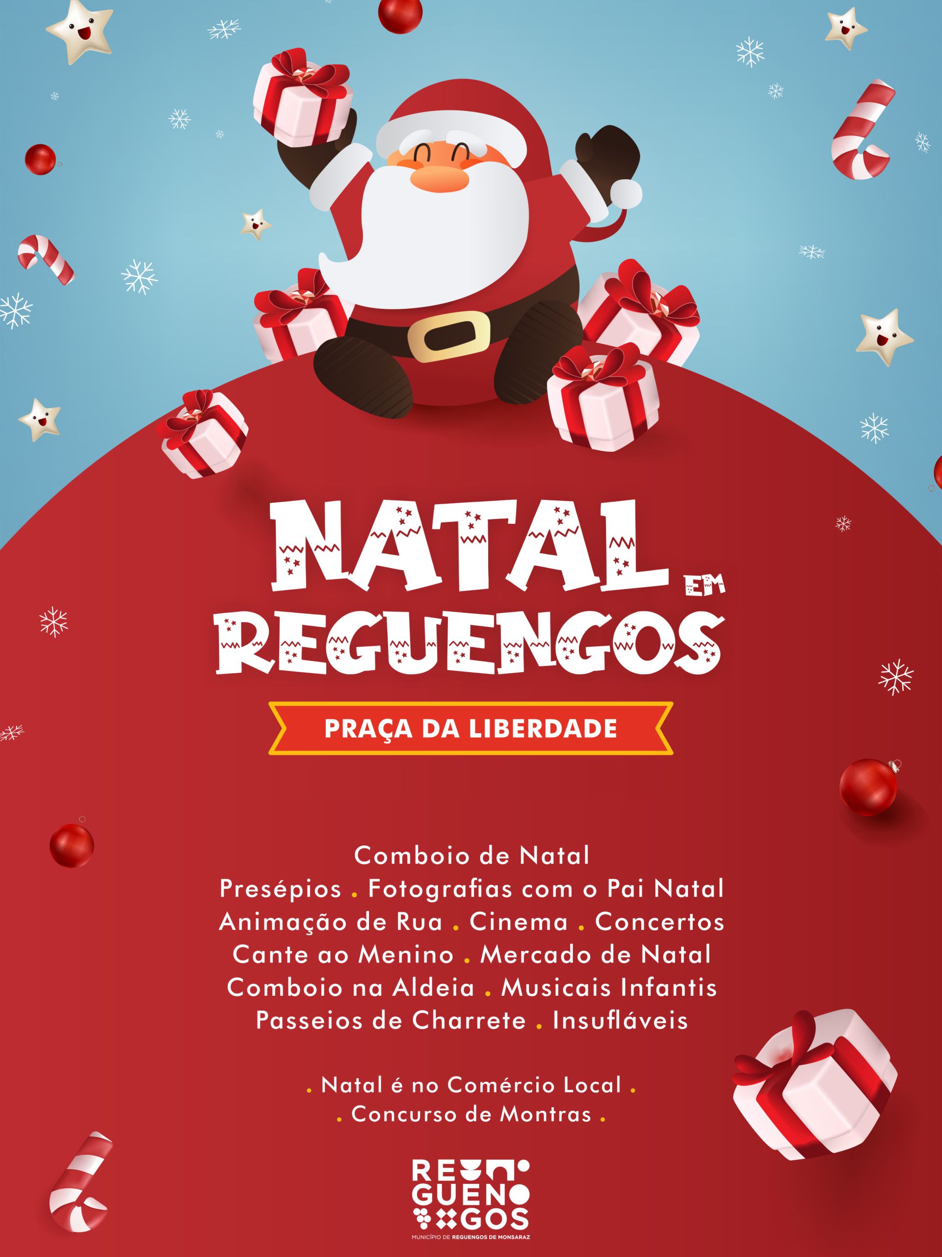 - 14h30 às 17h30: Animação na Praça com Passeios de Charrete, Fotos pai natal, Mercado de natal e Insufláveis _Praça da Liberdade