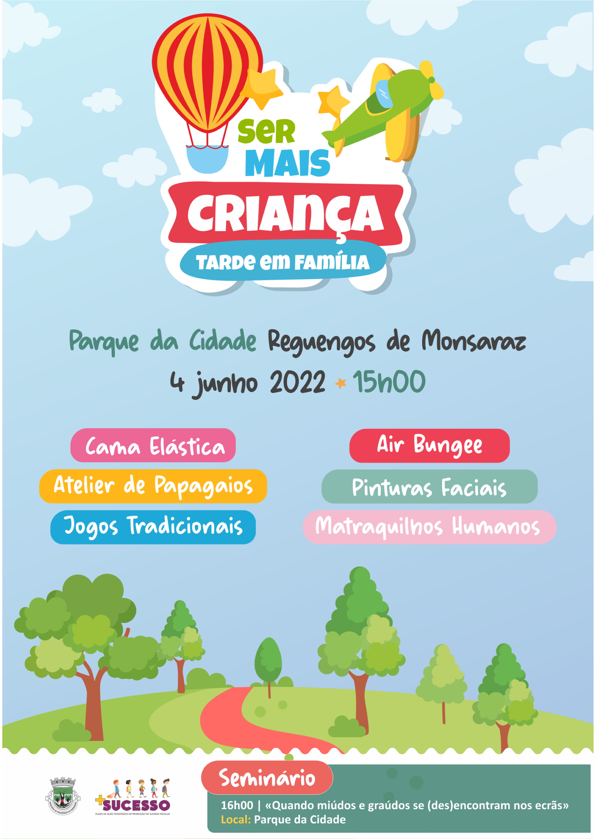 No sábado, 4 de junho a partir das 15h00 no Parque da Cidade, vai acontecer uma tarde dedicada às crianças e famílias com muitas atividades e animação.