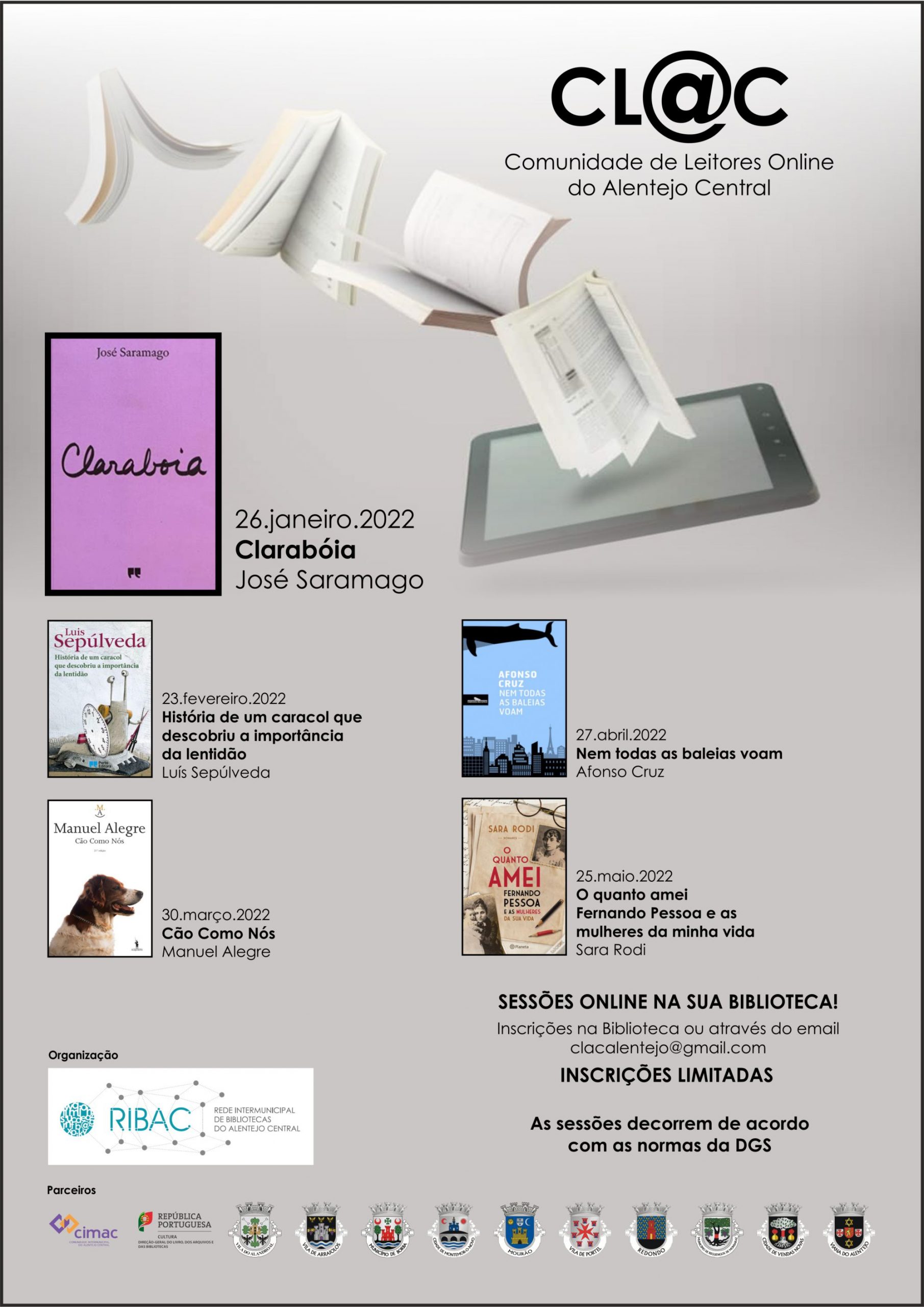 As vagas são limitadas, inscreva-se já através do email: clacalentejo@gmail.com ou na Biblioteca Municipal.