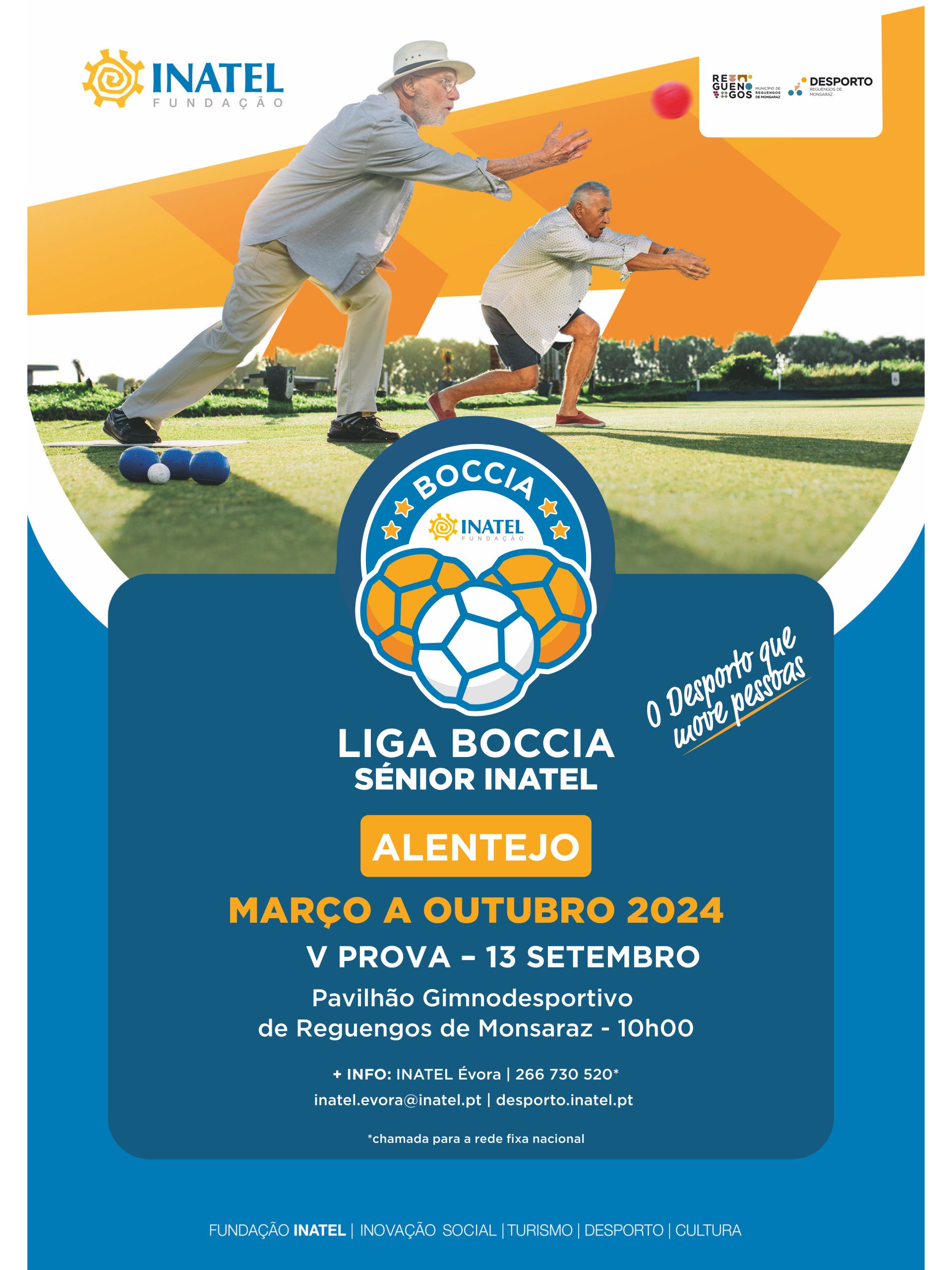 Está a chegar a V Prova da Liga Boccia Sénior INATEL – Alentejo, que terá lugar no próximo dia 13 de setembro de 2024, no Pavilhão Gimnodesportivo de Reguengos de Monsaraz, pelas 10h00.