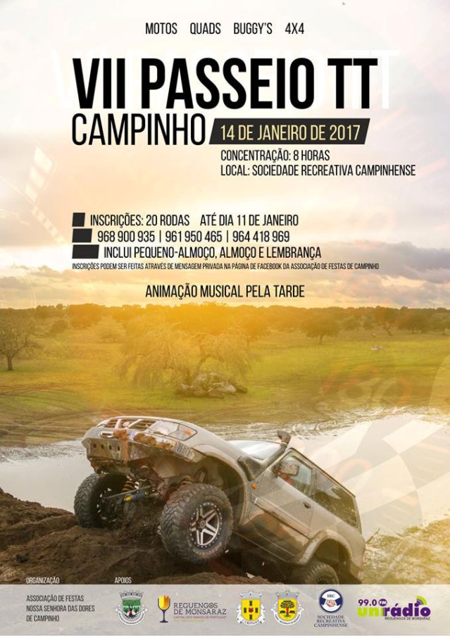 Passeio TT para motos, quads, buggy’s e 4×4. Organização da Associação de Festas de Nossa Senhora das Dores de Campinho.