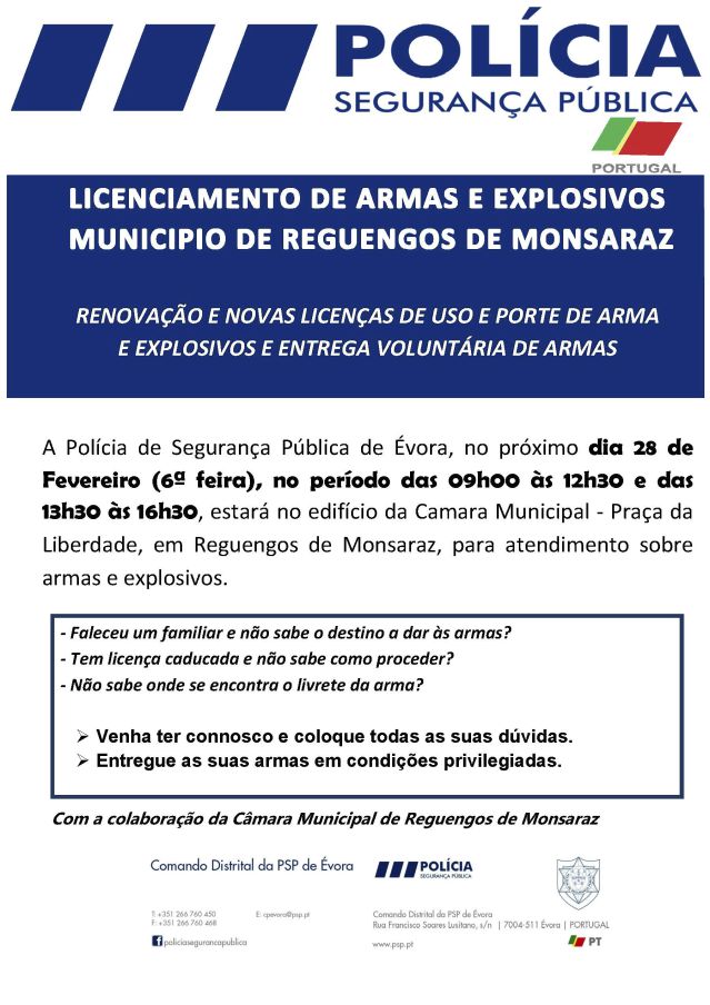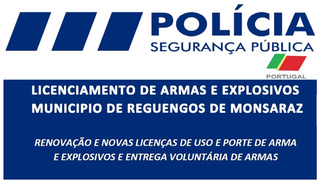 Licenciamento de armas e explosivos em Reguengos de Monsaraz