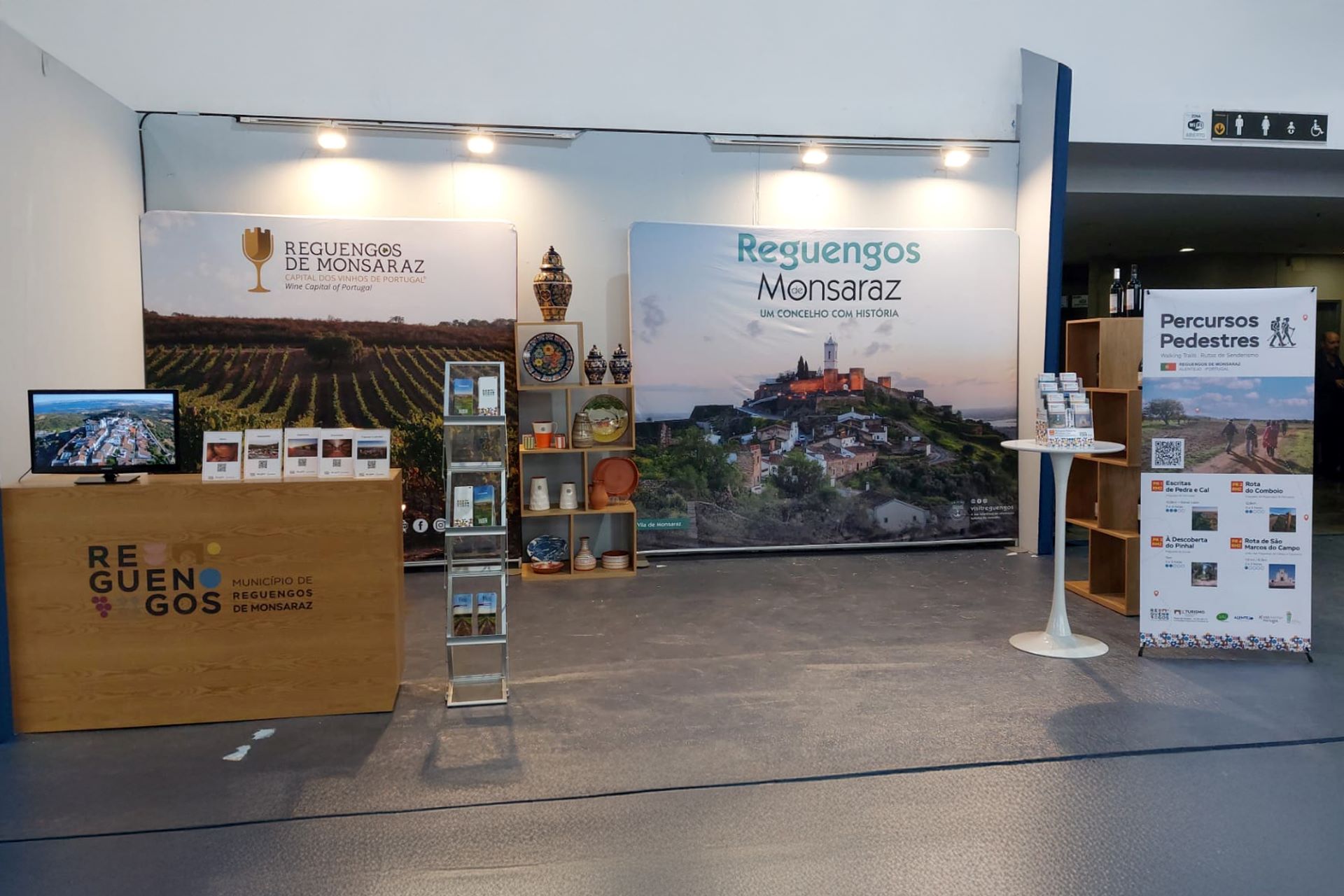 No stand de Reguengos de Monsaraz há informação sobre os próximos eventos no concelho, como o Presépio de Rua de Monsaraz, as atividades do Natal em Reguengos e da passagem de ano, assim como dos quatro percursos pedestres que já estão marcados e com painéis informativos em português e inglês, abrangendo rotas circulares de trilhos urbanos e rurais que podem ser feitas durante todo o ano pelos pedestrianistas, nomeadamente os percursos Escritas de Pedra e Cal, Rota do Comboio, À Descoberta do Pinhal e Rota de São Marcos do Campo, um em cada freguesia do concelho. Numa segunda fase, a autarquia pretende implementar mais quatro percursos pedestres, nomeadamente a Rota de São Gens, a Rota das Vinhas, a Rota de São Pedro do Corval e a Rota de Santo Amador, ficando cada freguesia com dois percursos.